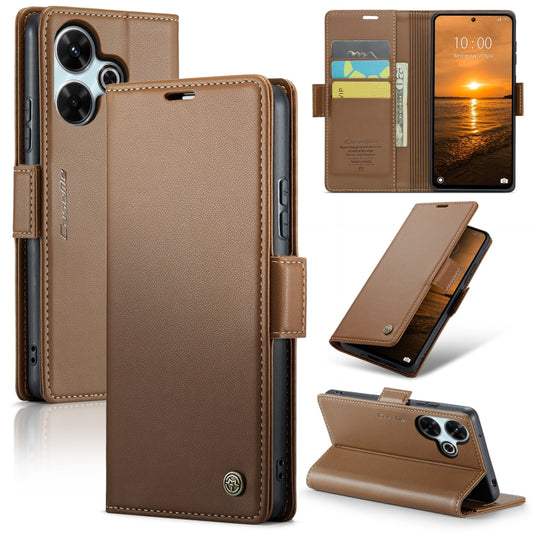 For Redmi 13 CaseMe 023 Butterfly Buckle Litchi Texture RFID Anti-theft Leather Phone Case(Brown)