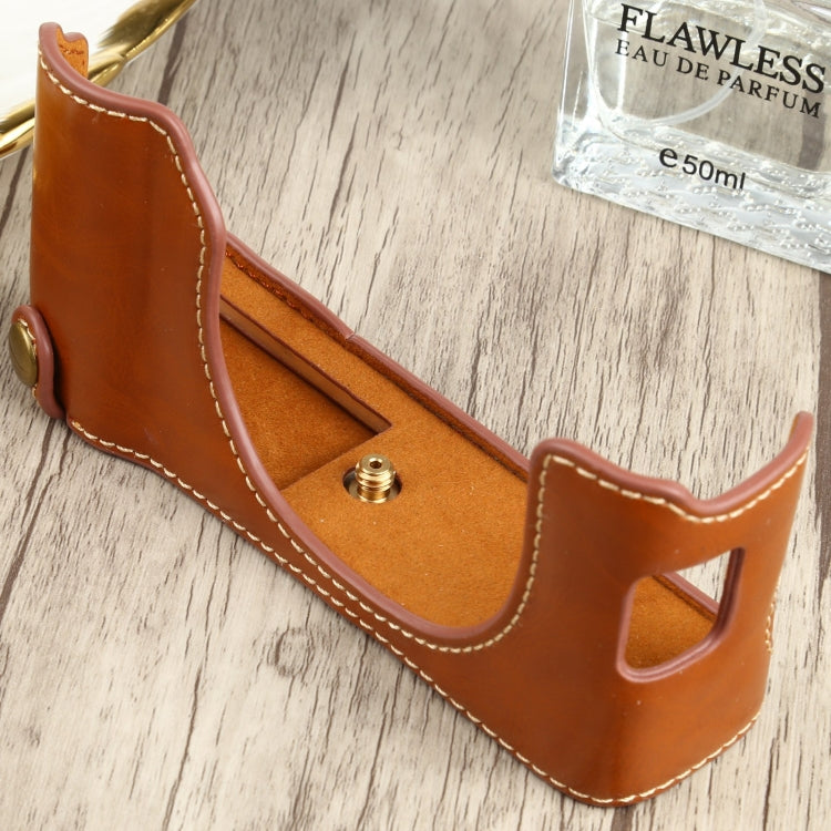 1/4 inch Thread PU Leather Camera Half Case Base for FUJIFILM X100V (Brown)