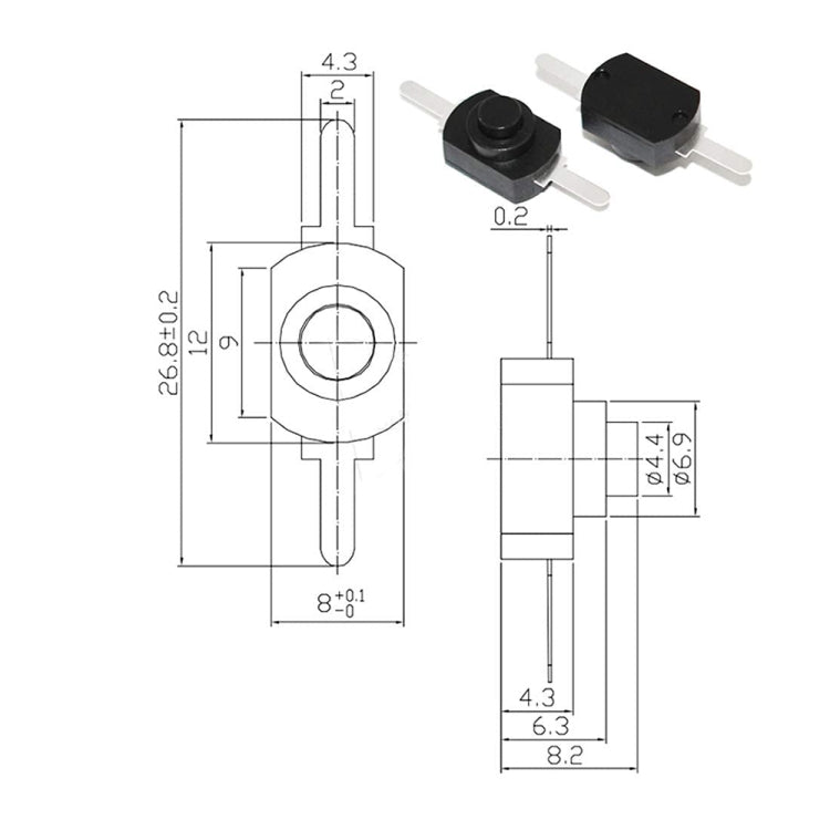 20 PCS YT-1208-YD LED Flashlight Button Switch, Style:Straight Feet(Black)