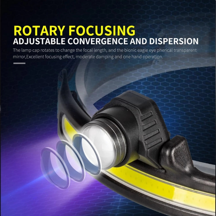 678-1 Fixed Focus XPG + COB Sensor Headlight Flashlight 6 Lighting Modes Rechargeable Head Lamp