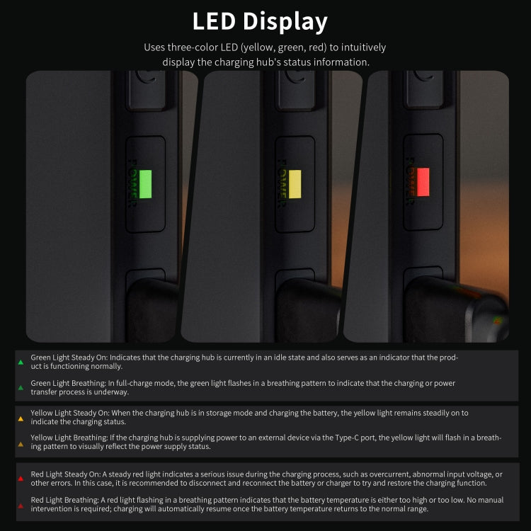 2. High-quality materials: Made of ABS+PC materials, the surface is smooth and burr-free, sturdy and durable; it can be charged in the upright position, controlled by an intelligent chip, and has stable input and output without damaging the battery;
