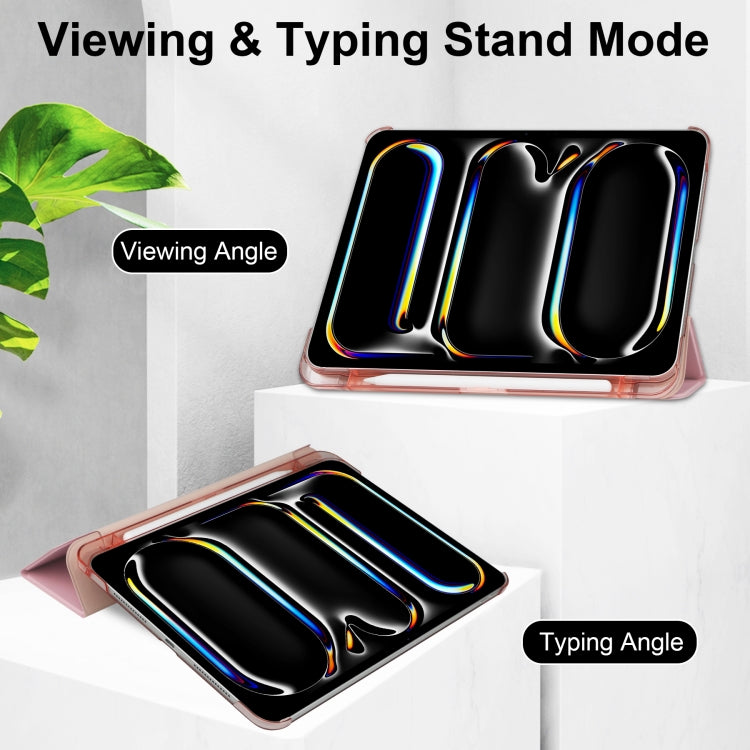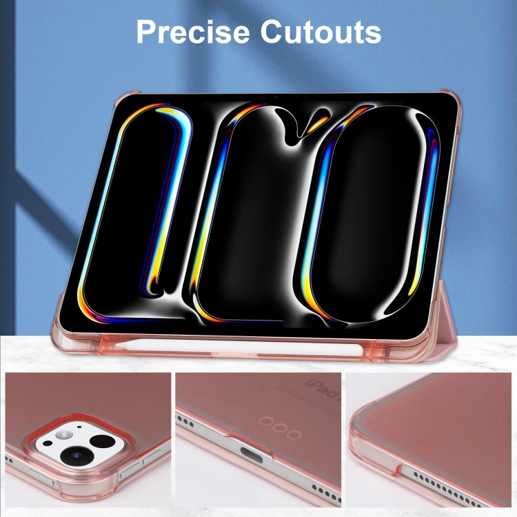 For iPad Pro 13 2024 3-fold Semi-transparent Frosted Smart Leather Tablet Case(Rose Gold)