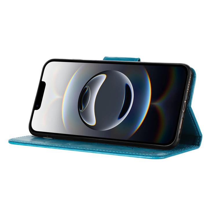 For iPhone 16e Butterfly Flower Pattern Flip Leather Phone Case(Blue)