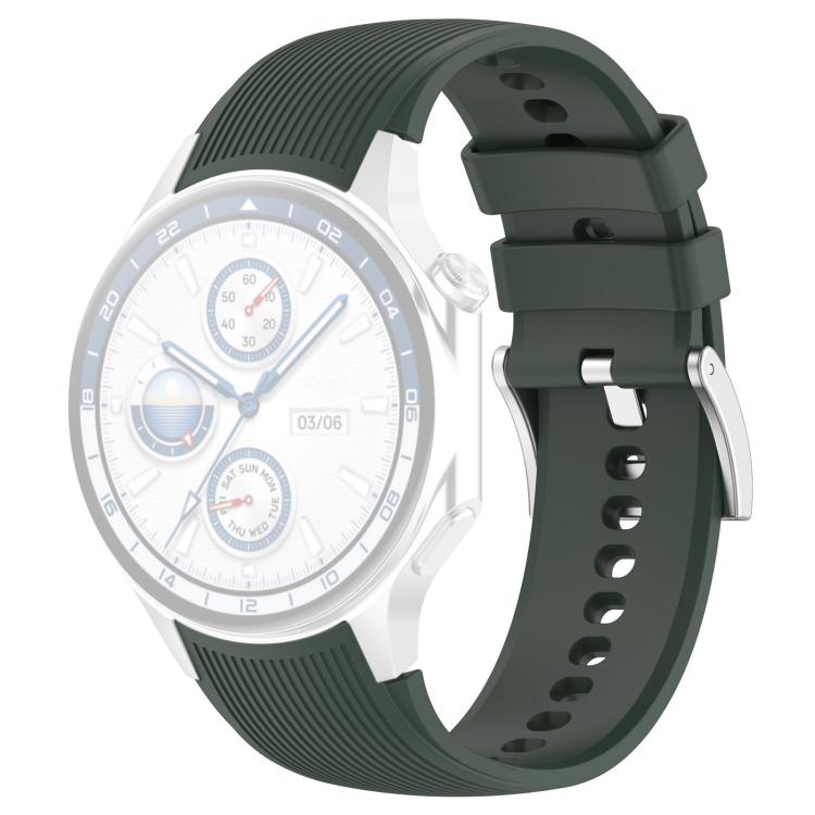 For OPPO Watch X / X2 / OnePlus Watch 2 xDfind Silver Buckle Silicone Watch Band(Dark Green)