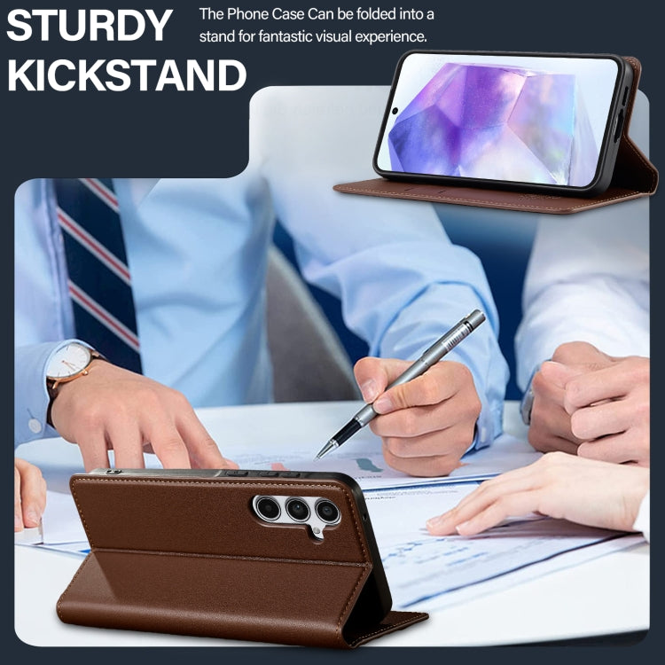 For Samsung Galaxy S24 FE 5G LC.IMEEKE L1 Series Frosted Fine Texture PU Phone Case(Brown)