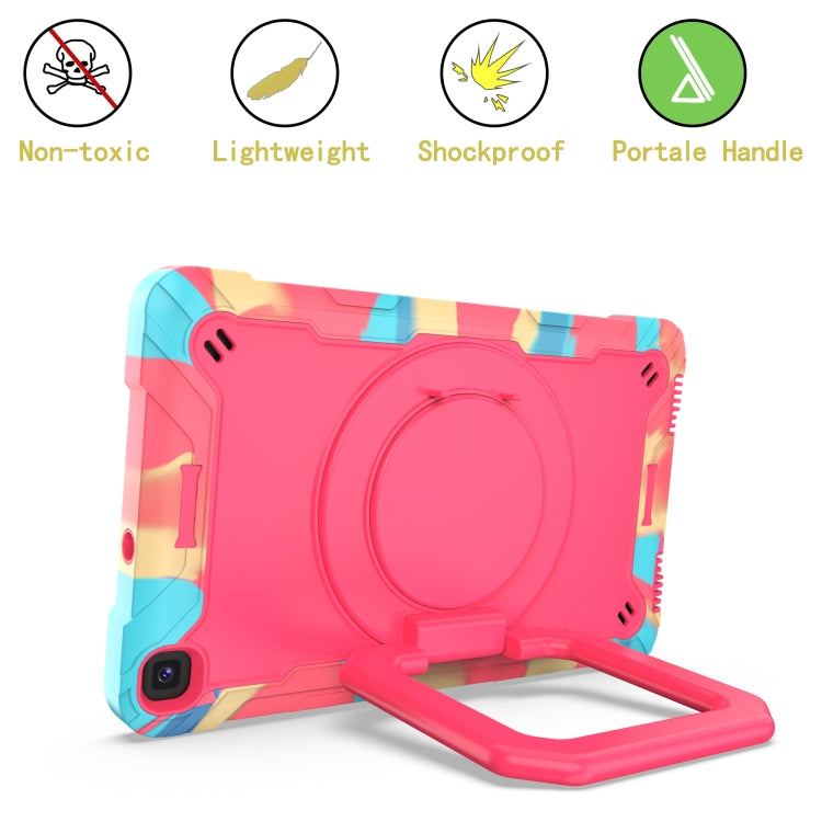 For Samsung Galaxy Tab A 8.0 (2019) T290 Contrast Color Shockproof Robot Silicone + PC Case with Wristband Holder(Camouflage + Rose Red)