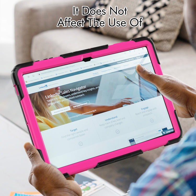 For Samsung Galaxy Tab S9 Ultra / S10 Ultra Lucky Wheel Grip Silicone Hybrid PC Tablet Case with Shoulder Strap(Black+Rose Red)