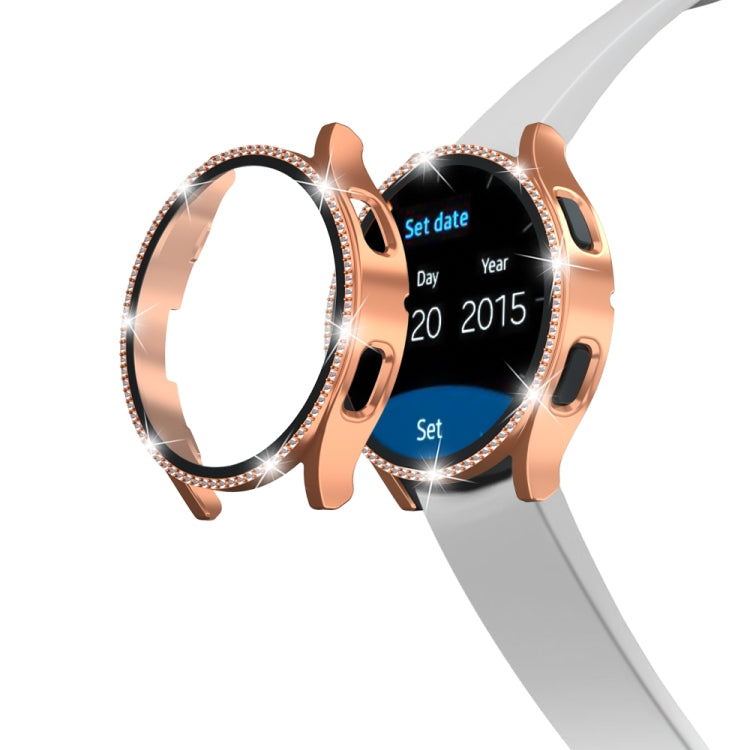 For Samsung Galaxy Watch4 40mm Single Row Diamond Electroplated PC+Tempered Film Watch Case(Rose Gold)
