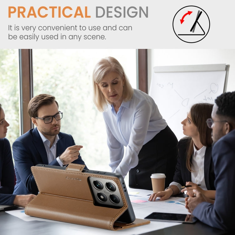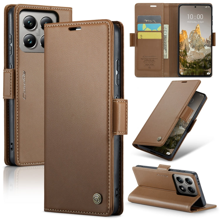 For Xiaomi 14T Pro CaseMe 023 Butterfly Buckle Litchi Texture RFID Anti-theft Leather Phone Case(Brown)