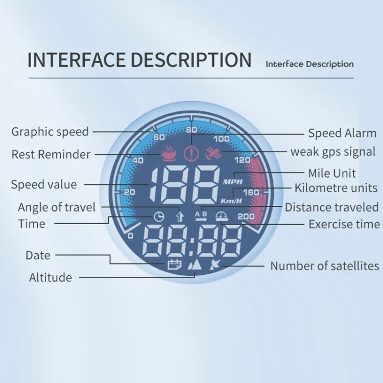 11. Speed ??alarm: set the speed alarm value, and sound and graphic alarm can be used when reached