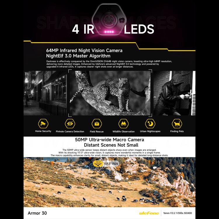 Ulefone Armor 30, 12GB+512GB, Night Vision, IP68/IP69K Rugged Phone, 6.95 inch Android 15 MediaTek Helio G100 Octa Core, Network: 4G, NFC, OTG (Black)