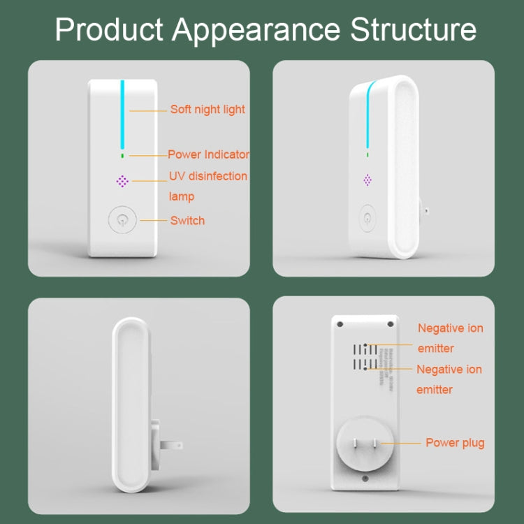 JHQ-12SS Negative Ion Air Purification UV Sterilizer with Night Light, Spec: EU Plug(White)