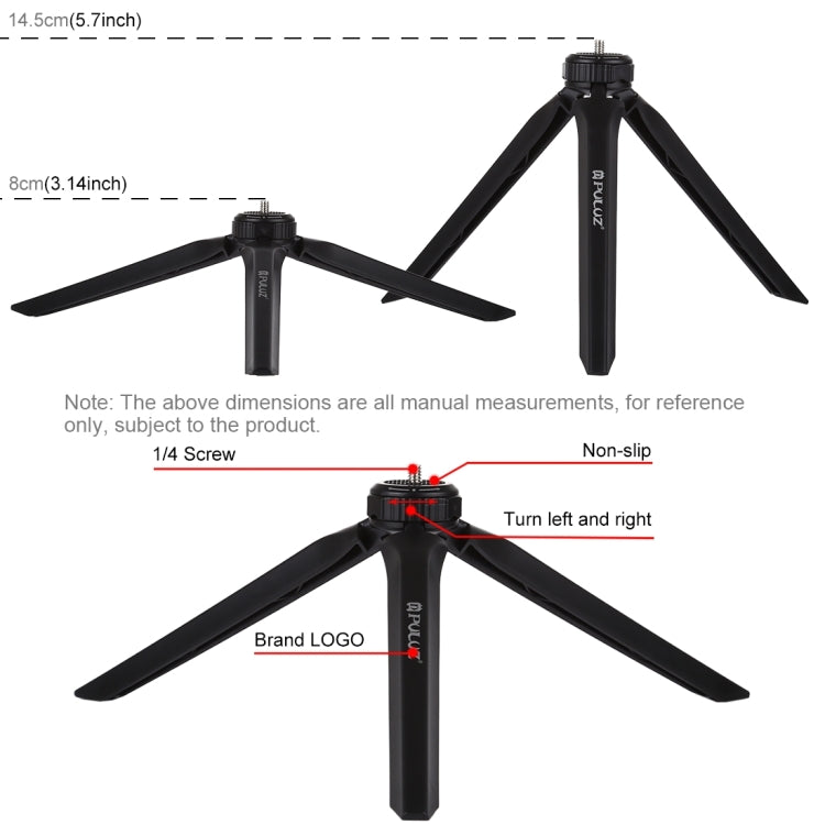 PULUZ Pocket Mini Plastic Tripod Mount with Phone Clamp for Smartphones(Black)