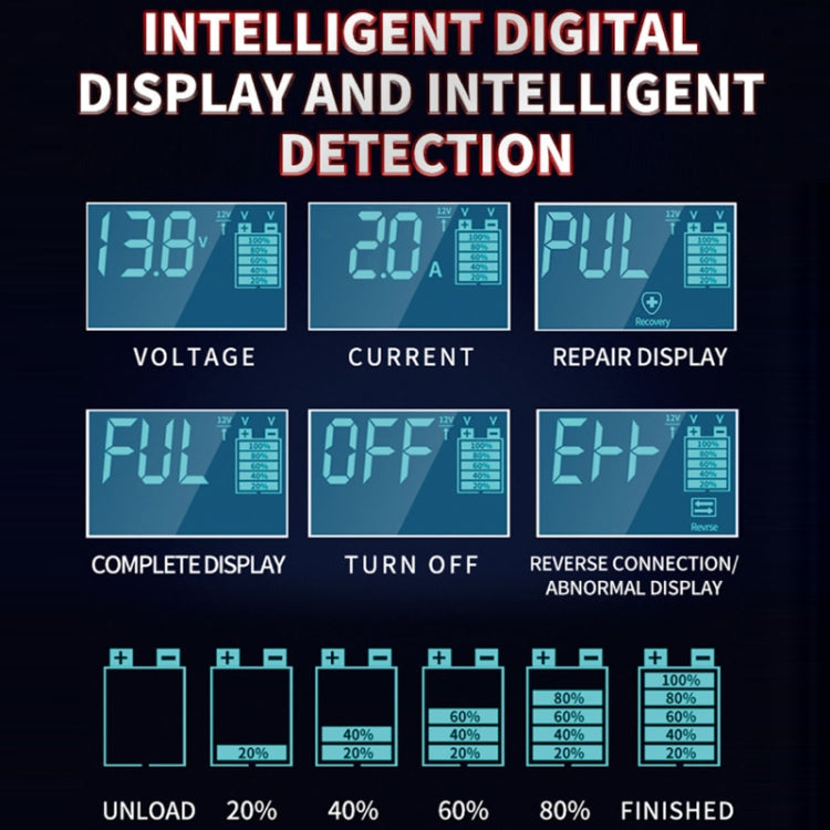 9. Pulse repair function: built-in advanced battery repair technology to help restore the lost performance of old/idle batteries and extend battery life