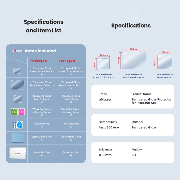 - Rear screen tempered film: about 65.4 x 39.4mm