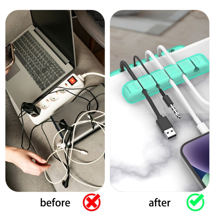 AhaStyle PT125-S 5 Holes Adhesive Version Silicone Cable Clip Desktop Data Cable Storage Holder(Luminous Blue)
