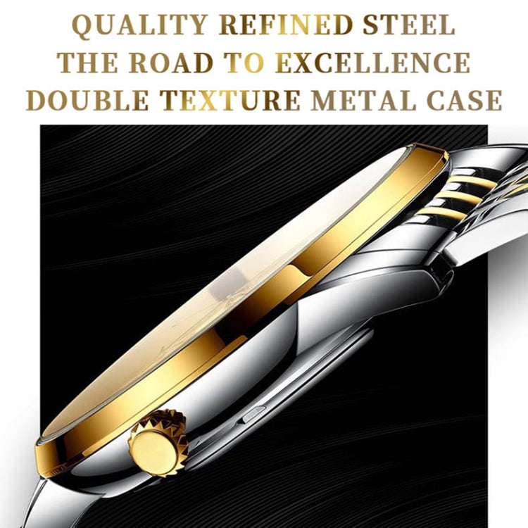 BINBOND B2077 30M Waterproof Quartz Luminous Watch Butterfly Buckle Men's Steel Belt Watch(Black Steel-Black)
