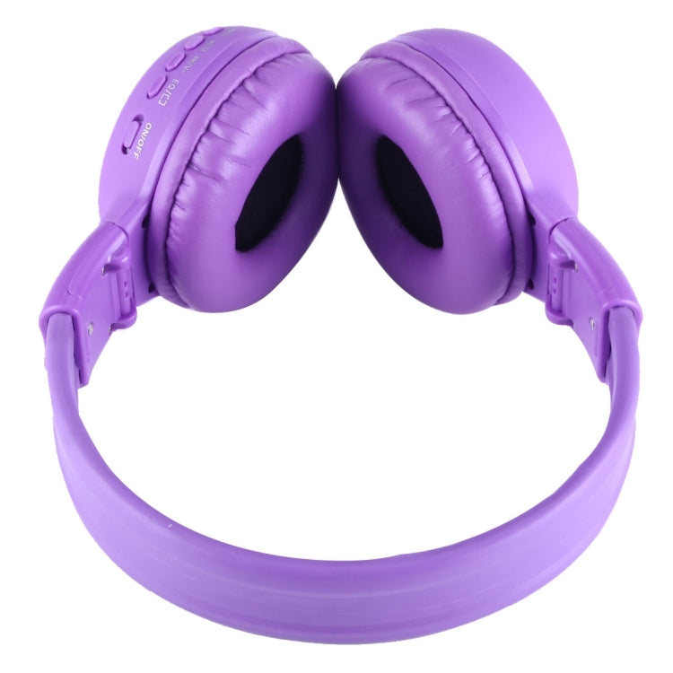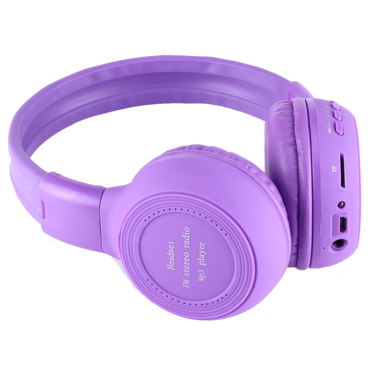 BS-N65 Headband Folding Stereo HiFi Wireless Headphone Headset with LCD Screen & TF Card Slot & LED Indicator Light & FM Function(Purple)