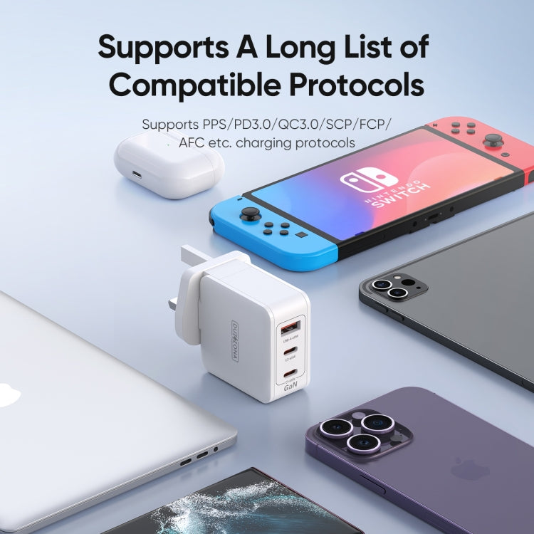 DUZZONA T9 65W Dual USB-C / Type-C+USB GaN Fast Charger, Specification:UK Plug