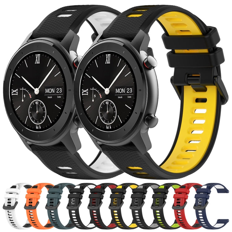For Amazfit GTR 42mm 20mm Sports Two-Color Silicone Watch Band(Black+Yellow)