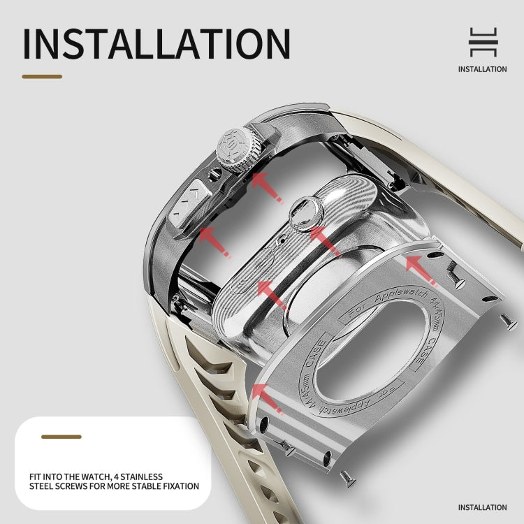 For Apple Watch 44mm / 45mm RedPepper Armor Metal Case Integrated Silicone Watch Band(Sliver White)