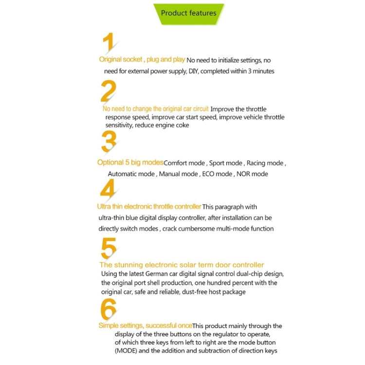 1. Sports mode: This mode will bring very strong sense of controlling the vehicle when driving, it is more suitable for the passionate drivers.