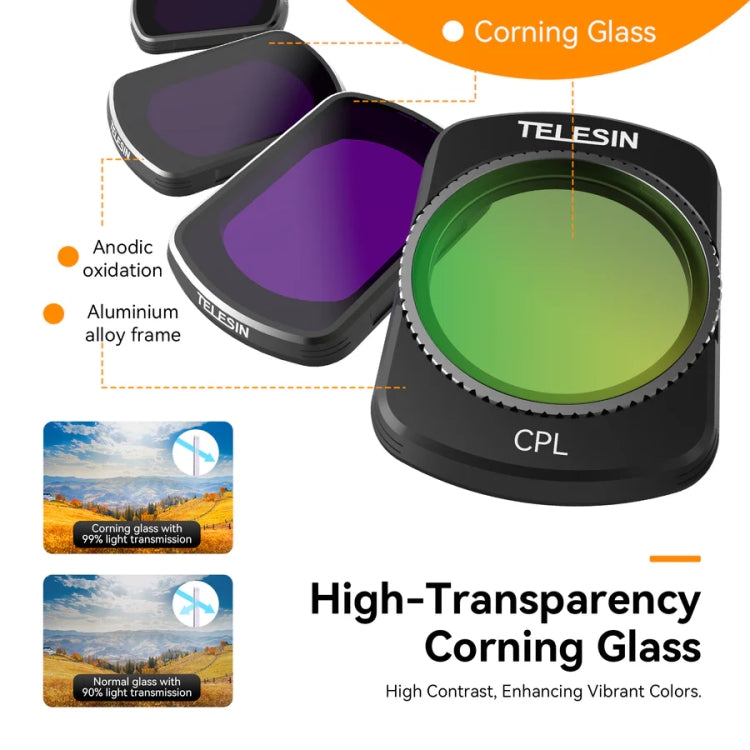 For DJI Pocket 3 TELESIN S5-FLT-03 Magnetic Suction Filter Set CPL+ND16+ND64+ND256