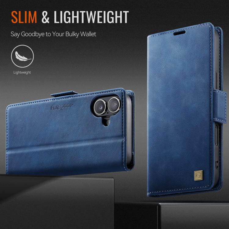 For iPhone 17 AutSpace A11 Side Buckle MagSafe Magnetic RFID Phone Leather Case(Blue)