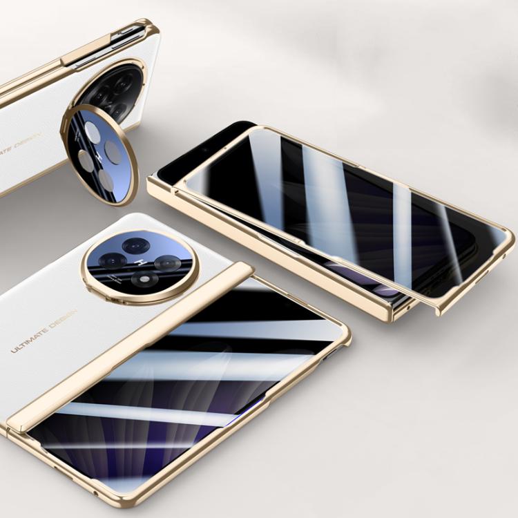 For OPPO Find N5 Integrated Privacy Electroplating Leather Hinge Lens Holder Phone Case(White)
