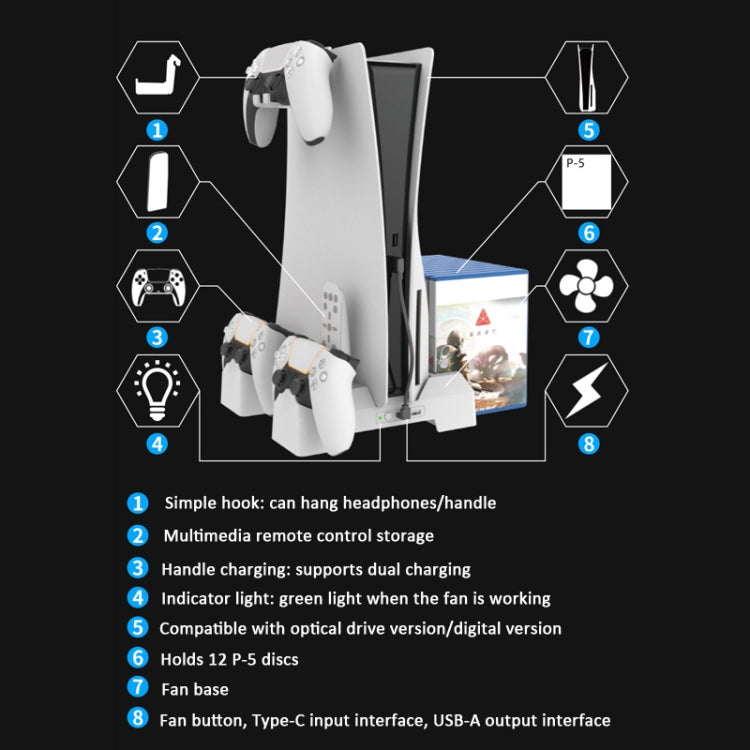 For PS5 iplay Dual-seat Charging and Cooling Base Bracket Storage Rack(White)
