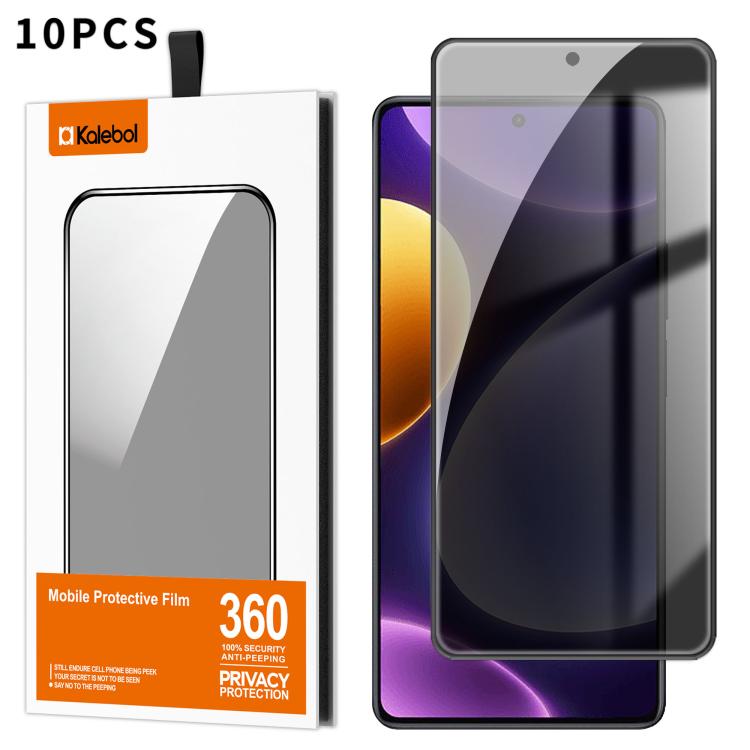 For Redmi Note 12 Turbo 10pcs Kalebol High-Aluminum Screen-Printed Full-Coverage Black-Border Privacy Tempered Glass Film
