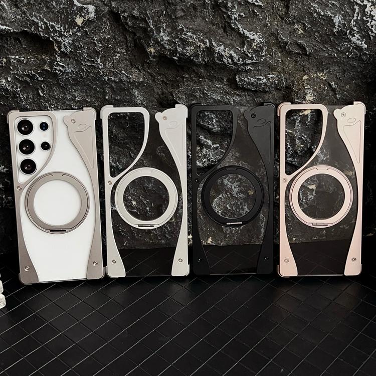 For Samsung Galaxy S24 Ultra 5G Metal Frameless 360 Degree Rotation Holder MagSafe Transparent Phone Case(Black)