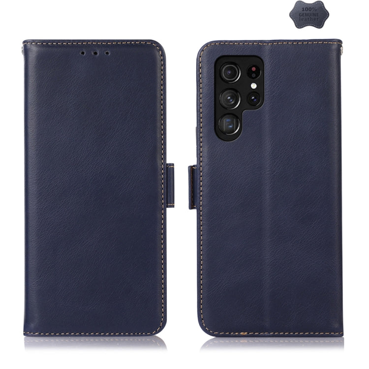 For Samsung Galaxy S24 Ultra Crazy Horse Top Layer Cowhide Leather Phone Case(Blue)