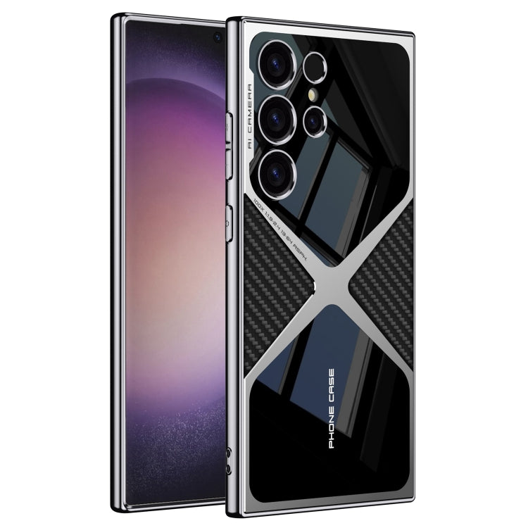 For Samsung Galaxy S24 Ultra GKK Leather Electroplating Supersonic Speed Shockproof Phone Case(Carbon Fibre)