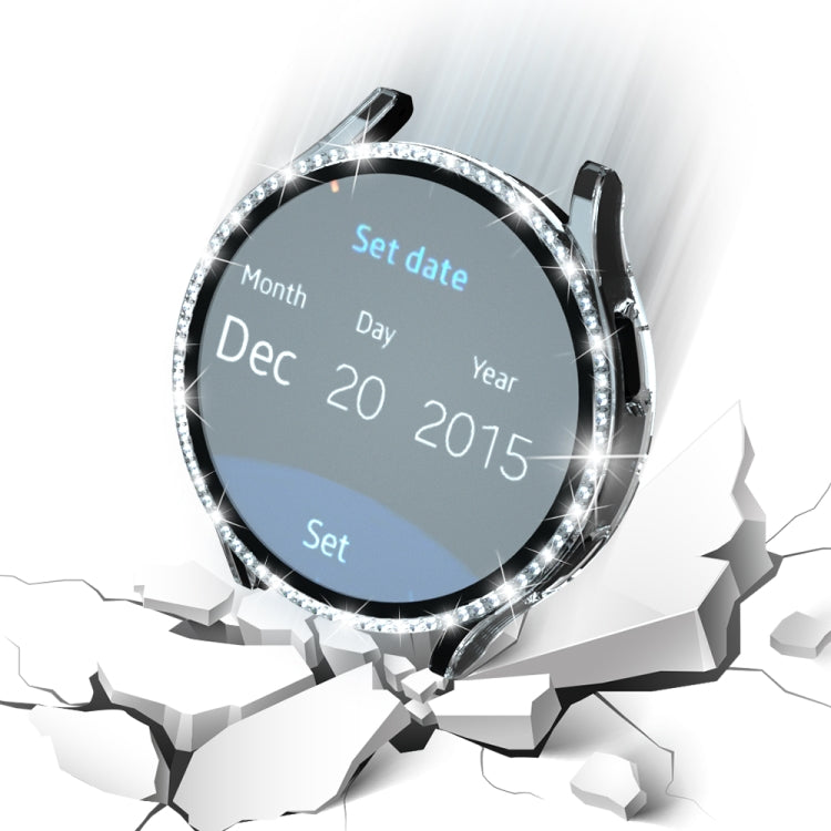 For Samsung Galaxy Watch4 40mm Single Row Diamond Electroplated PC+Tempered Film Watch Case(Transparent)