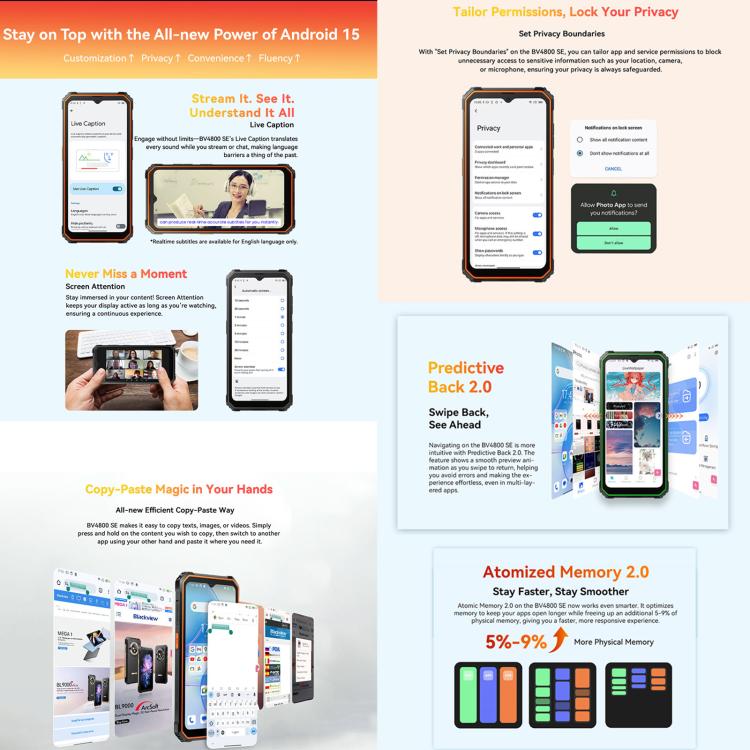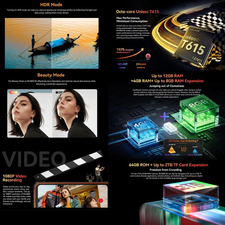 Blackview BV4800 SE Rugged Phone, 4GB+64GB, 6.56 inch Android 15 UMS9320E T615 Octa Core, Network: 4G, OTG, NFC (Black)