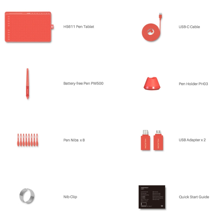 HUION HS611 5080 LPI Touch Strip Art Drawing Tablet for Fun, with Battery-free Pen & Pen Holder (Grey)