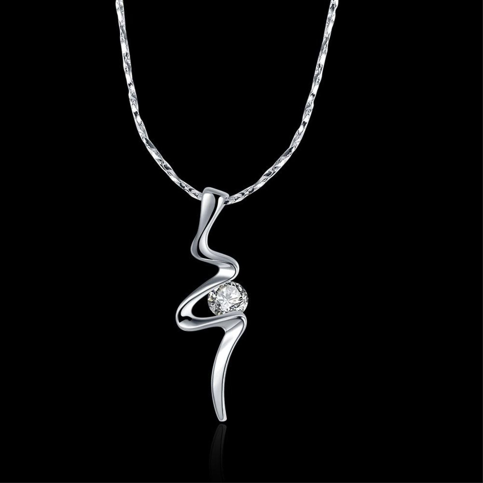 Italian Design Bolt from Heaven Necklace in 18K White Gold Plated with Austrian Crystals