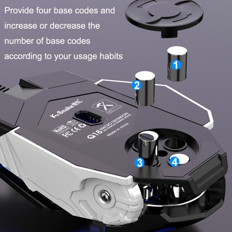 K-Snake Q18 9 Keys 6400DPI Glowing Machine Wired Gaming Mouse, Cable Length: 1.5m(Black)