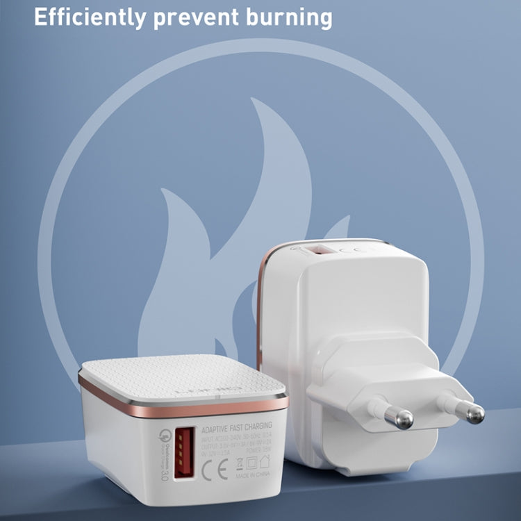 LDNIO A1204Q QC3.0 18W USB Fast Charger with 1m USB to Micro USB Cable, Plug Type:UK Plug(White Gold)