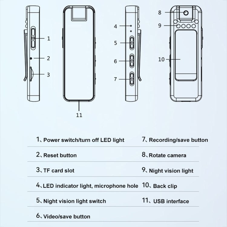 4. Back clip design, can be clipped into a pocket for recording, making it more convenient to use.