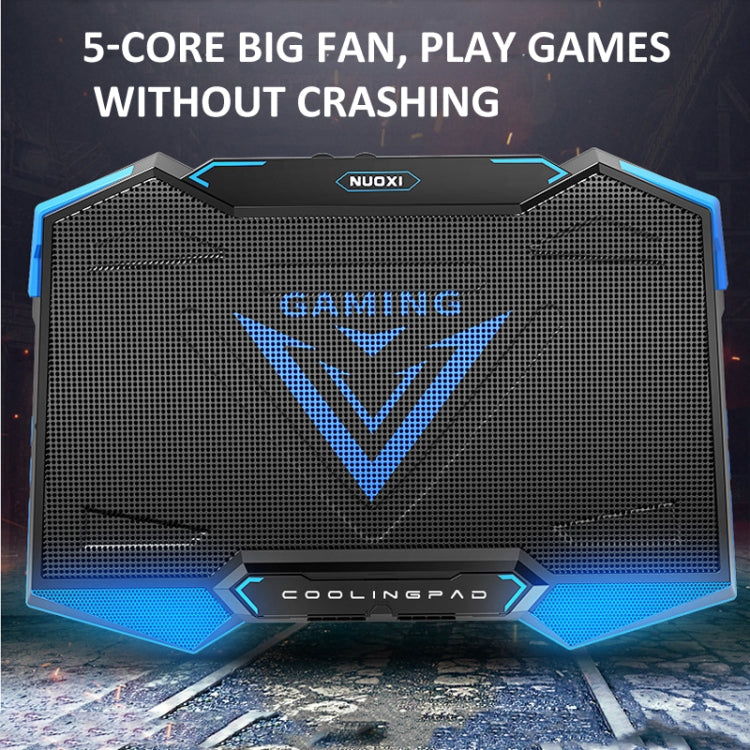 NUOXI 5 Fans Laptop Radiator Bracket Height Adjustable with Dual USB Ports(Black and Blue)