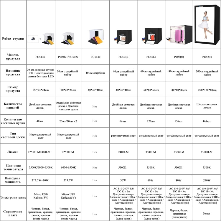 PULUZ 40cm Folding Portable 24W 5500K White Light Dimmable Photo Lighting Studio Shooting Tent Box Kit with 6 Colors (Black, Orange, White, Red, Green, Blue) Backdrops(EU Plug)