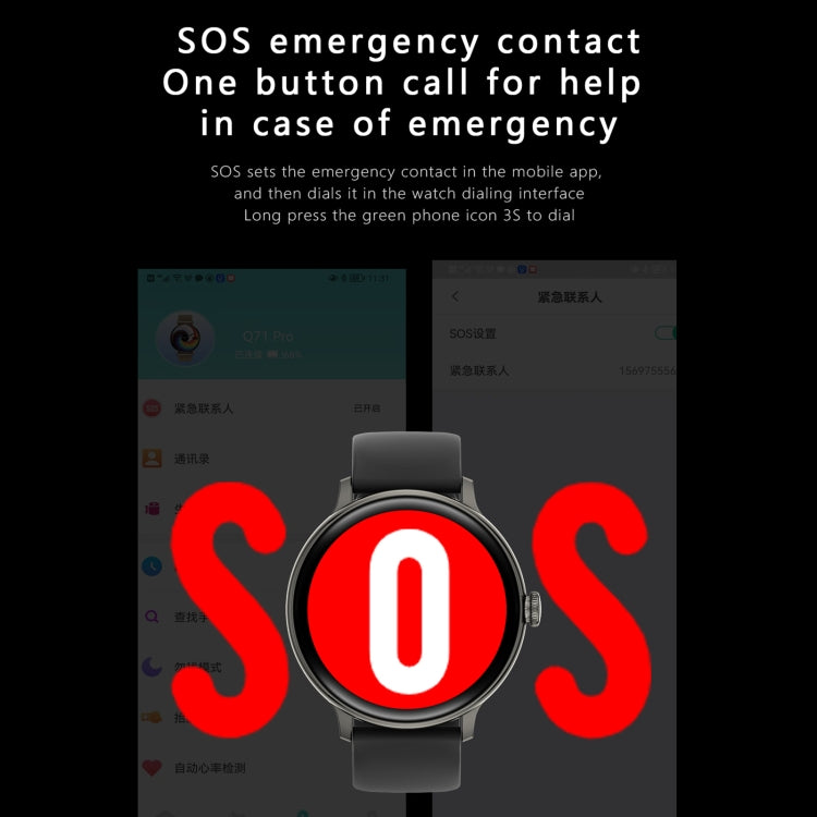 16. Functions: Bluetooth calling, music playback, 24-hour heart rate monitoring, massive dial switching, full touch, smart photo, physiological period, password, calculator, one-key SOS, adjustable screen time, call reminder/rejection, message Storage, multi-sport mode, changing standby interface, stopwatch, address book, call record, exercise record (pedometer, calorie burn, mileage), information reminder, etc.