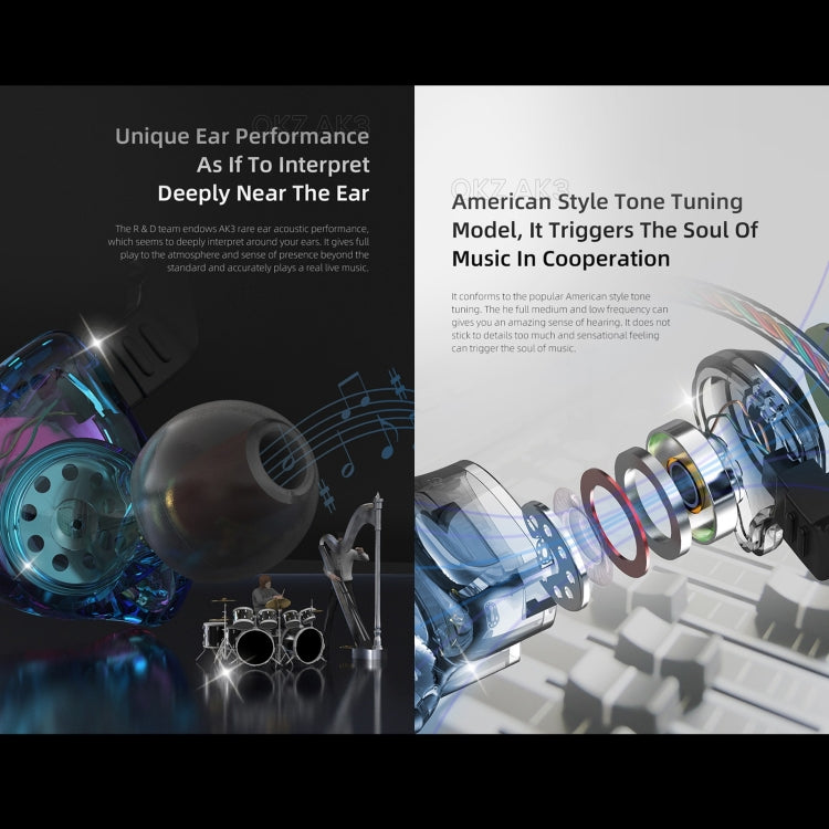 QKZ AK3 FiLe In-ear Subwoofer Wire-controlled Earphone with Mic(Colorful)