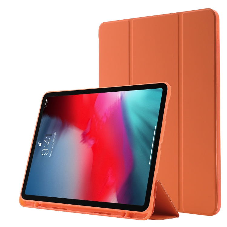 Skin Feel Pen Holder Tri-fold Tablet Leather Case For iPad Air 13 2025 / 2024 / iPad Pro 12.9 2022 / 2021 / 2020 / 2018(Orange)