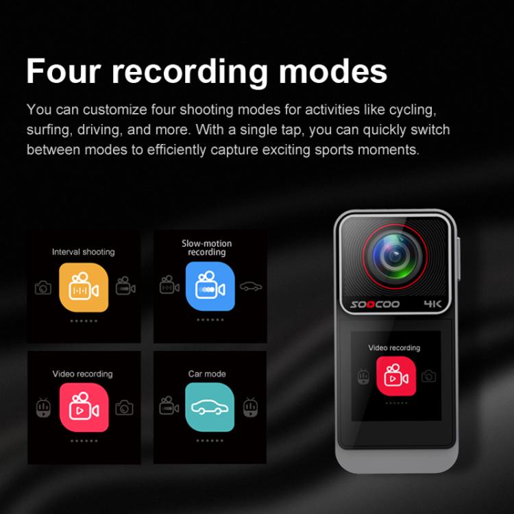 7. 4 customizable shooting modes, suitable for riding, surfing, driving and other scenarios, point and click to quickly switch, efficiently capture the exciting sports moments