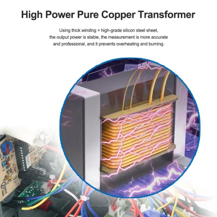3. High-power pure copper transformer, the use of thicker winding + silicon steel, stable output power, more accurate and professional measurement, to prevent overheating and burning