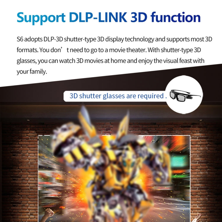 4. 0.23 inch DMD chip, projection performance is better, the picture is brighter, more brilliant colors