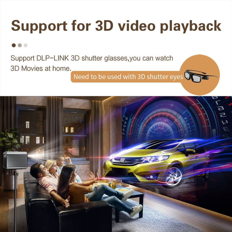 5. Support 3D source playback, with DLP-LINK 3D shutter glasses (not included), you can watch 3D blockbusters at home
